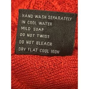 In good used condition, this sweater has been well-maintained and is ready for its next adventure. The classic cable knit design adds a touch of sophistication, while the vibrant red color makes a bold statement.