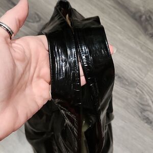 GUC Black Patent Leather LG Charles David Hobo Bag, magmetic main closure and soft tan lining in great condition. All standard interior pockets. Patent is in great condition, no tears, cracking or flaws on handles. Handles have a 7" drop.