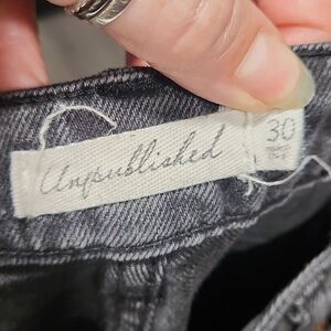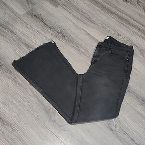 GUC Faded Black Raw Hem Unpublished Flare Jeans, slight stretch and soft. Waist flat is 15", 11" rise, and 31" inseam.