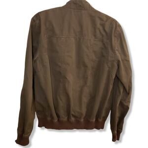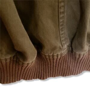 Good used condition, Carapace military style jacket, size small. Zip pockets and snapped neck. Banded bottom and sleeves. Jacket has a small flaw-one of the snaps at the neck is missing a part and not functioning fully. Cannot notice it when snapped and can barely tell when open. See photos. Full zip. Army green / Tan in color. From my smoke-free and pet-free home.