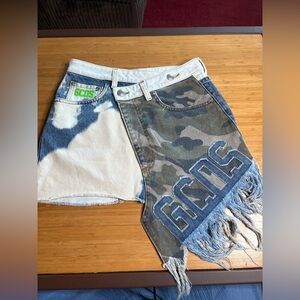 GUC GCDS- Camouflage Fringe Asymmetrical Shorts. Size 26