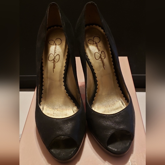 GUC Jessica Simpson Suede Peep Toe Heels