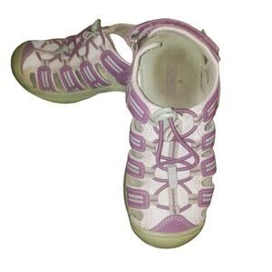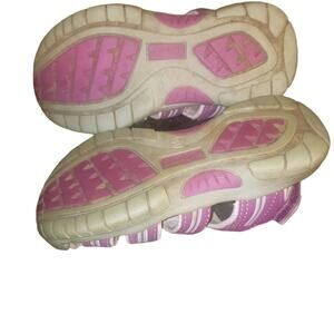 In very good shape! Light purple with dark purple trim. Bungies in great working order, Velcro works great, no rips or holes of any kind. A couple of small spots from normal use (see pictures). Used one season by one careful child. Size 12. From my smoke-free and pet-free home.