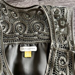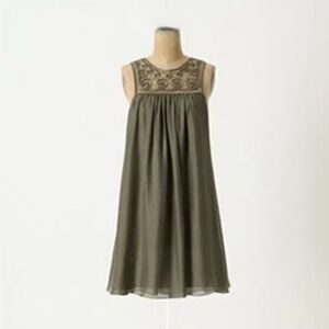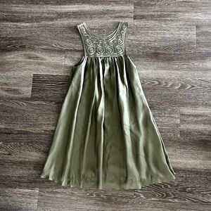 GUC Leifsdottir Silk Embroidered Babydoll Dress Olive Green Size 8 Boho Flowy