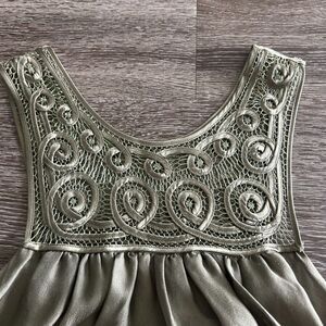 GUC Leifsdottir Silk Embroidered Babydoll Dress Olive Green Size 8 Boho