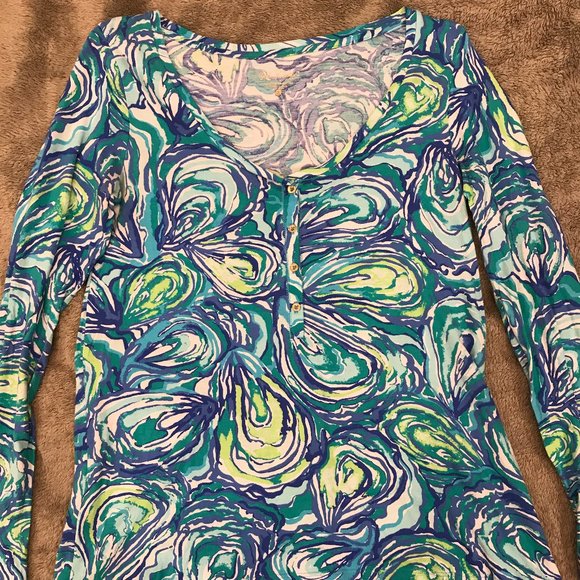 Lilly Pulitzer Sorella top in great used condition. This rare Oh Shucks print is one of my favorites and has no flaws.