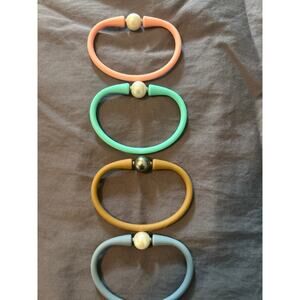 GUC Lot of 6 Bracelets Rubber Faux Pearls Cross Pink Green Brown Blue Tan Black