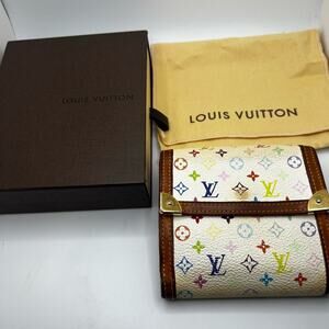 GUC Louis Vuitton White Murakami Trifold Wallet with Box and Dustbag
