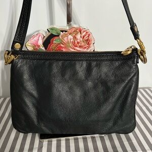 Black pebbled leather. Gold hardware. Interior staining. Otherwise perfect bag.