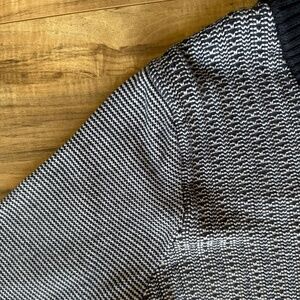 Good Used Condition - Men's H&M Shawl Neck Collar Birds Eye and Striped Sweater in size Medium. *Please see the last pics to show examples of the minor wear on the fabric of the collars and hem. I also noticed a super tiny pull with my reading glasses on inspecting the sweater.