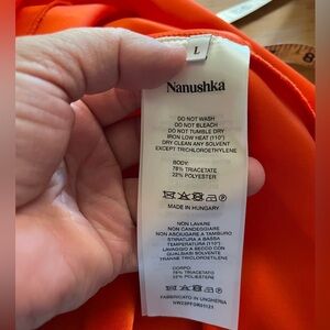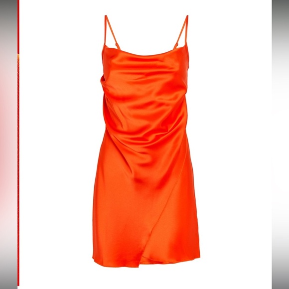 GUC Nanushka Emila Wrap Effect Mini Dress in Blood Orange. Size L.