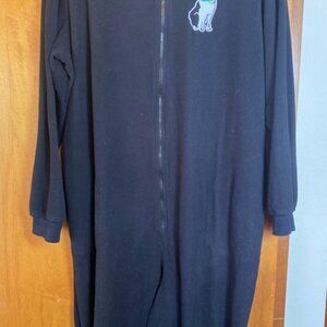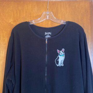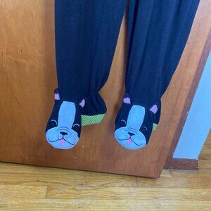 GUC Nick & Nora Footed Pajamas Women’s XXL Black Frenchie Dog Fleece One Piece