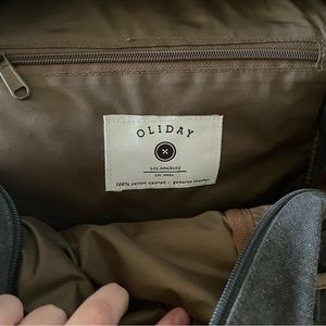 Cutest diaper bag ever - GUC as it was only used for one child… in 2020/2021. Some wear marks on the corners (see pics) but so much life left. It’s a dark gray canvas with brown accents.