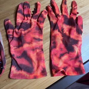 Self: 100% polyester Lining: 95% viscose 5% lycra. Made in United Kingdom. Dry clean only. Fully lined. Pull-on styling. Off shoulder styling Back cut-out. Attached train detail Mesh fabric overlay with tonal beaded embellishments. Hidden size zipper. Gloves included.