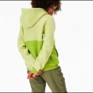 Outdoor Voices MegaFleece 1/2 Zip Hoodie in Pistachio and Mossy green. This is a women's large with an oversized fit. Super cozy pockets and lined hood. Gently used. Pet and smoke free home.