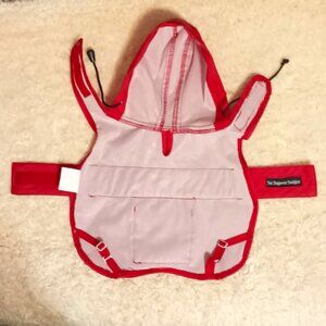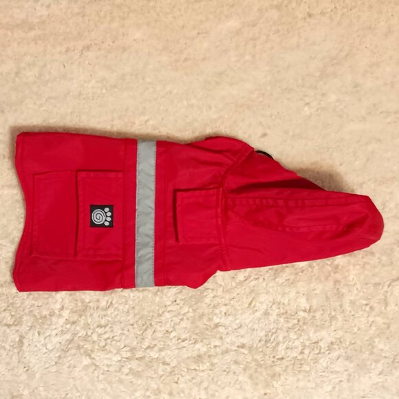 This Pet Rageous Designs rain coat has been cleaned, sanitized & dried before putting it into a ziploc bag to keep it clean for its next owner.