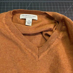 GUC Pronto Uomo cashmere blend sweater sz XL. Light pilling in the underarms. Pit to pit and length measurements are shown in photos. No stains or holes. From the closet of an older relative who has downsized. Smoke free and dog friendly home.
