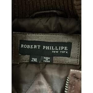 GUC Robert Phillipe Brown Leather Bomber Jacket Zipper Pockets Size 2XL