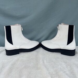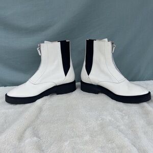 GUC STUART WEITZMAN Lodge Zip Leather Bootie in White Size 8B **defects** Moto