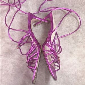 GUC Schutz Women's 7.5 Dark Metallic Pink Purple Strappy Heels Leather