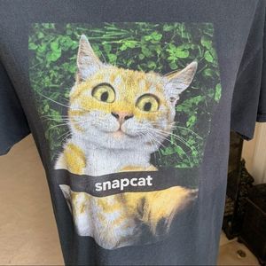 Super cute black tee has a cat graphic and says Snapcat. Some fading. Like black tees always do lol. Graphic has some cracks but it looks great just like it is.