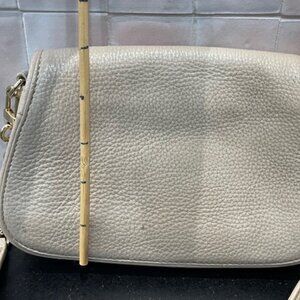 GUC TORY BURCH SIGNED BEIGE LEATHER CROSSBODY CHAIN STRAP X-OVER SMALL BAG PURSE