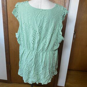 GUC Torrid 4X Green Eyelet Ruffle Sleeve Babydoll Top