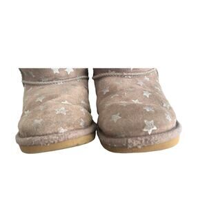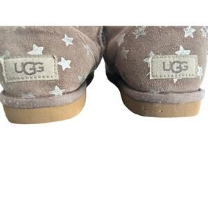 Add a touch of sparkle to your step with these Ugg Classic Short Boots! These pre-owned boots are in good used condition and feature a fun star design on the classic chestnut brown suede. The cozy fleece lining will keep your feet warm and comfortable all day long. Perfect for adding a little personality to your casual outfits! Grab them before they're gone!