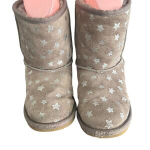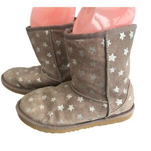GUC Ugg Classic Short Boots Stars Chestnut Brown Fleece Lined Suede Size 4