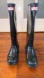 GUC Women’s Size 8, Hunter, Tall, Black, Non-Slip, Waterproof, Rubber Rain Boots. In Good Used Condition, does show minor signs of wear on insole label and a few outer scuff marks. Bottoms are in excellent used condition. Please see video and photos