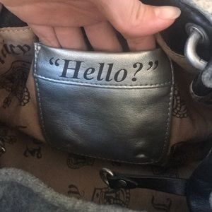 SO CUTE ๐ Great, clean condition! Gray velour with pink embroidery. Has a couple of spots inside and a tiny peel at the bottom back, which have been pictured. Comes with a gorgeous keychain / bag charm with pink rhinestones made of a great heavy metal. Amazing light pink Scotty dog emblem embroidery. Great genuine leather trimmings. Offers welcome~