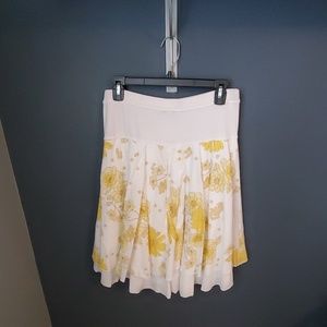 Cute white with yellow flowers knee length skirt. In good condition, fully lined. The lining u underneath there is a slight hole (see pic 4), but you cannot tell with the overlaying layer. Purchased from Nordstrom's originally. Approximately 24" in length.