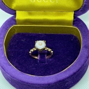 GUCCI 18k 3 diamonds pink opal real diamonds 3 jaguar head 100% real