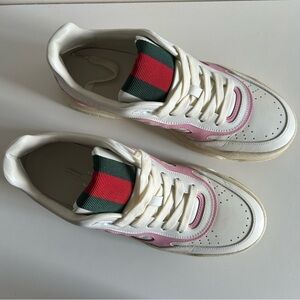 GUCCI 2024 Re-Web Low-Top Sneakers White Pink Leather Sz 40
