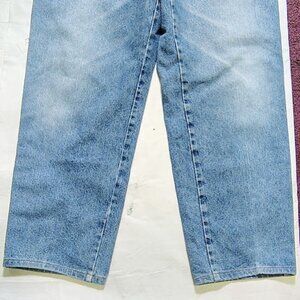 The product is a pair of Gucci medium wash denim jeans in a size 38x29. These regular fit jeans are designed for men and feature a wide-leg style in a classic blue color. Made from denim fabric, they have a waist size of 38 inches and an inseam of 29 inches. Perfect for casual and stylish everyday wear, these Gucci jeans combine quality craftsmanship with a trendy design. Except for the slight fraying on the front left pocket, they have no stains, tares, rips or defects- just a great GUCCI look!