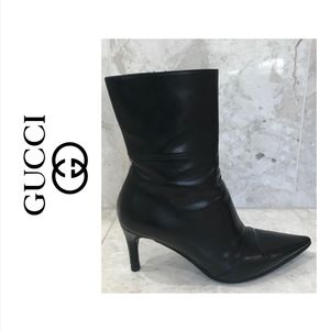 GUCCI {5} Booties Leather Healed Black