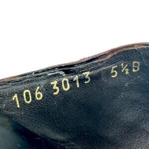 Moderate scuffs throughout; wear at soles; minor discoloration at insoles; minor scratches at hardware; minor balding at vamps. Separation on straps has been repaired with glue.  Missing logo heel pad on left shoe.