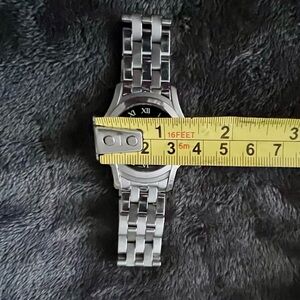 Swiss movement, analog time and date, with black face, Roman numeral hour marks. Water resistant. Serial #13225347