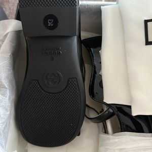 Gucci black patent leather with crystal buckle shoes, size 25 little kids.
