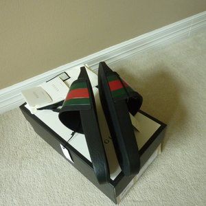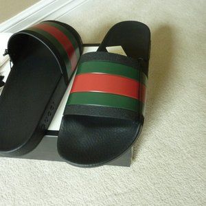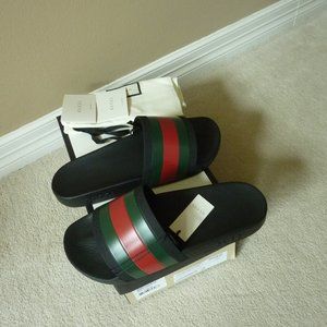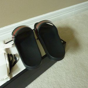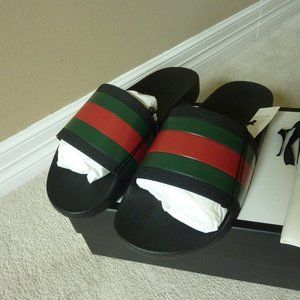GUCCI '72 Signature Web Rubber Sport Slides Sz. 12