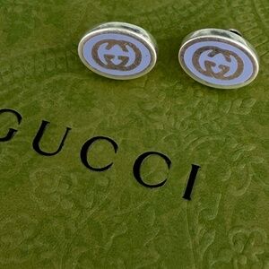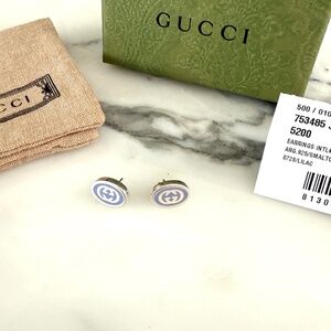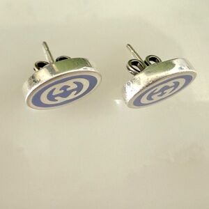 GUCCI 753485 Earrings Interlocking G Enamel Purple & Silver 925 Oval w/Box