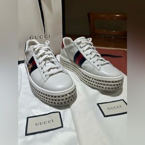 GUCCI ACE PLATFORM TRAINERS WITH CRYSTALS * SZ 36.5 GREAT CONDITION