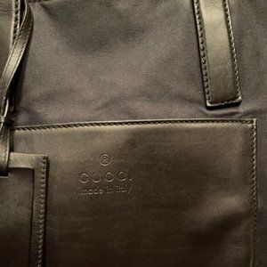 AUTHENTIC GUCCI NYLON AND LEATHER TOTE WITH TOP EXTENDER. PRE-LOVED EXCELLENT CONDITION. MEASUREMENTS: 19 X 16 X 7.5 X 4" DROP