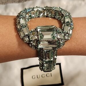 GUCCI Aquamarine Crystal Horsebit Cuff GENUINE in Blue Size 16 with COA Rare!!