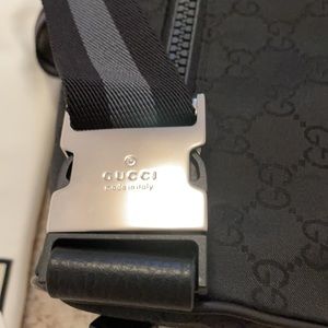 GUCCI Authentic Black Canvas Belt Cross Body Bag