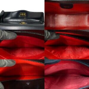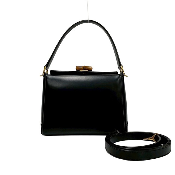 GUCCI Authentic Black Leather Bamboo Shoulder Bag
