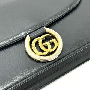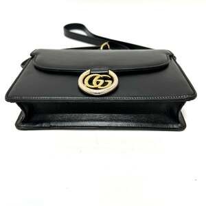 GUCCI Authentic Black Leather GG Marmont Shoulder Bag