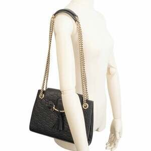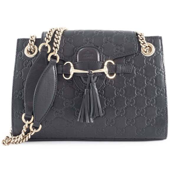 GUCCI Authentic Black Leather Horsebit Shoulder Bag
