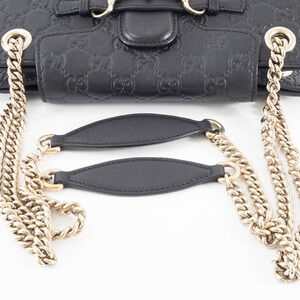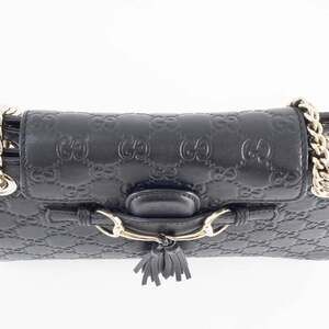 GUCCI Authentic Black Leather Horsebit Shoulder Bag