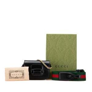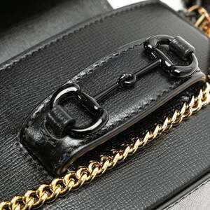 GUCCI Authentic Black Leather Horsebit Shoulder Bag